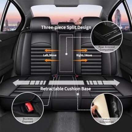 Protect and enhance your Kia Soul (2010-2023) with JOYOTO Full Set Car Seat Covers. This 5-piece set features waterproof, durable cushions for both front and rear seats, guarding against spills, stains, and daily wear. Sleek black design ensures a perfect fit and stylish look, while easy installation keeps your vehicle’s interior pristine and comfortable. Ideal for maintaining your car’s value and adding lasting protection with effortless style.