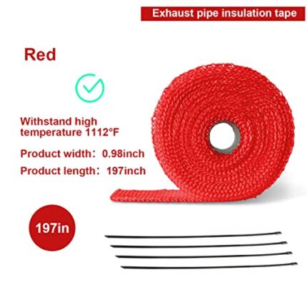 Titanium Motorcycle Exhaust Wrap 16FT Heat Shield Tape w/ SS Ties Red