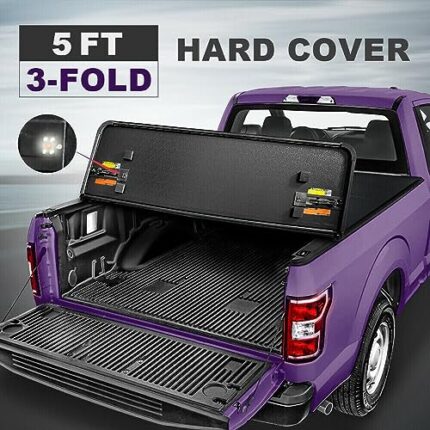 Upgrade your Frontier's style and protection with this durable 5FT hard tri-fold tonneau cover. Sleek design, LED lighting, and custom fit for 2005-2023 models. Secure your cargo and enhance your truck's look in one smart accessory.