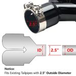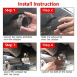 The tip slides smoothly over a 2.5-inch exhaust pipe and secures with included hardware. We recommend using high-temperature exhaust sealant (not included) for the best seal and to prevent any rattling. During our test fitting, we confirmed that the tip sits flush and straight when properly aligned, creating that factory-installed appearance.