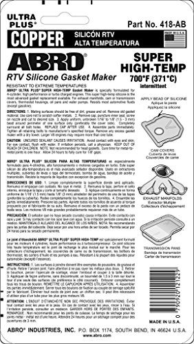 ABRO Ultra Plus 999: Professional-grade copper RTV silicone sealant withstands 650°F. Sensor-safe, non-corrosive formula perfect for import engines, gaskets, and high-temp applications. 3 oz tube delivers lasting seals.