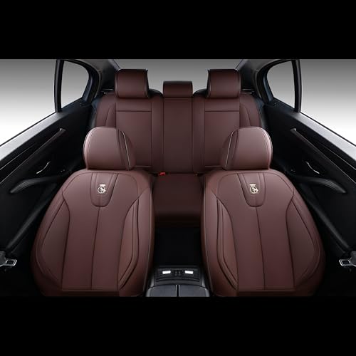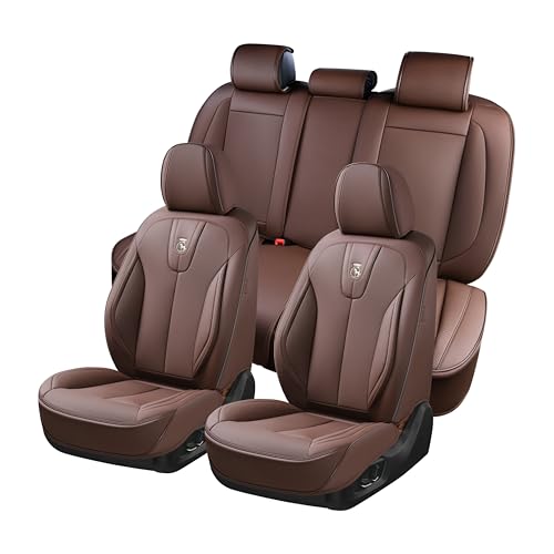 Luxurious waterproof leather seat covers for 5-seat vehicles. Complete front & rear protection in elegant brown. Universal fit for sedans, SUVs, and trucks. Premium leatherette for style and durability.