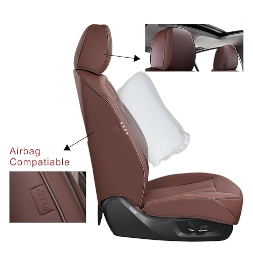 Aupaver Waterproof Brown Leather Car Seat Covers Full Set 5-Seat