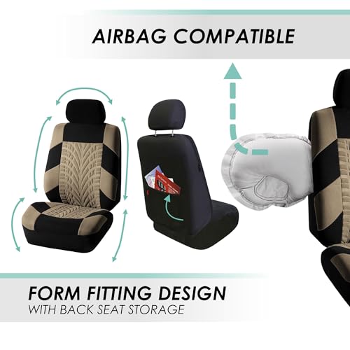 Upgrade your car’s interior with FH Group’s premium beige seat covers. Universal fit, airbag compatible, and designed for low-back seats with removable headrests. Protect and style your SUV or sedan in comfort.