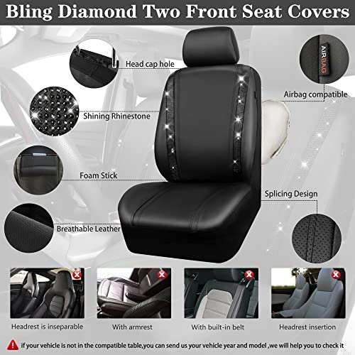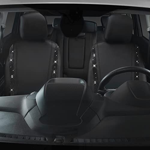 Sparkly Black Leather Car Seat Covers | Universal Fit Rhinestone Bling Design