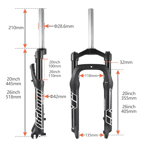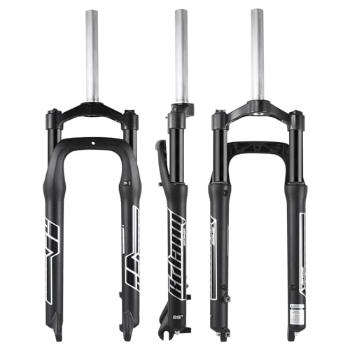 BOLANY Fat Tire MTB Suspension Fork, 20/26 x 4.0 inch 1 1/8 Straight Tube 100mm Travel Spacing Hub 135mm Manual Lockout 9mm QR Oil Spring Front Forks for Snow Beach XC Mountain Bike