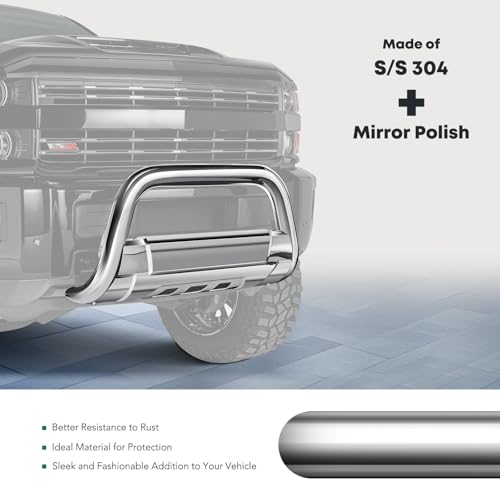 Beyond functionality, the sleek and modern design of the YHTAUTO Bull Bar adds a commanding presence to your truck. The brushed stainless steel finish not only looks great but also matches various truck colors, enhancing the overall visual appeal.