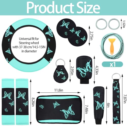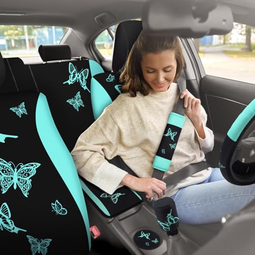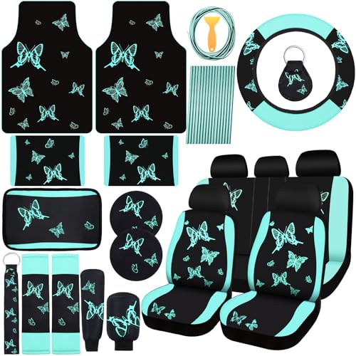 Butterfly Car Seat Cover Set: 47 Pcs Women’s SUV Interior Accessories Kit Green Black