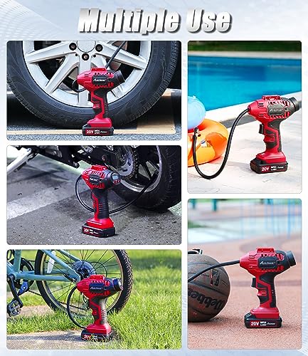 Powered by a rechargeable 20V battery, this tire pump offers the freedom to inflate your tires without being tethered to a power outlet. The cordless design makes it perfect for both roadside emergencies and home use.