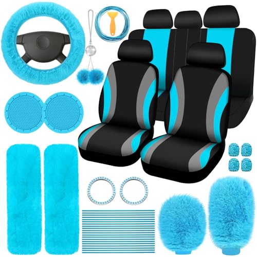 Cozy Lake Blue Full Car Seat Cover Set – Soft Fuzzy 43pc Women’s Auto Accessory Kit