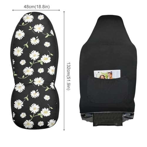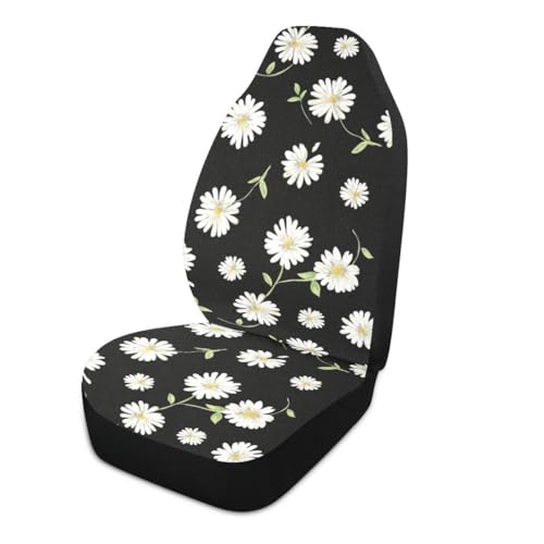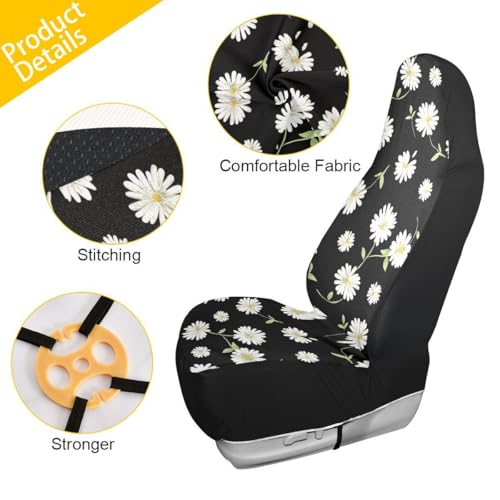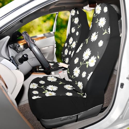 Cute Daisy Black Car Seat Covers Set | Universal Fit | Women’s Floral Auto Accessory