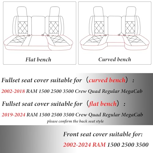 Premium Waterproof Dodge RAM Seat Covers | Full Set, 2002-2024 Models, Black Curved Bench