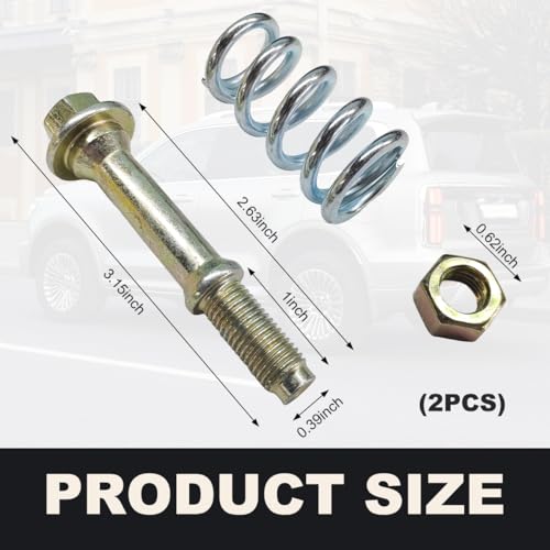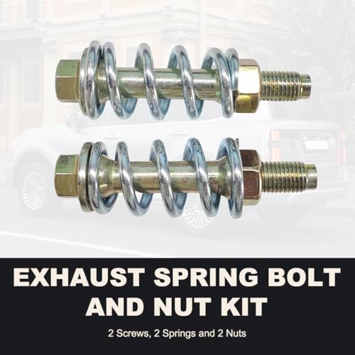 Premium exhaust bolt and spring kit (2 PCS) for secure, rattle-free installation. Universal fit for cars, trucks & SUVs. Heavy-duty grade construction ensures long-lasting performance and easy mounting.