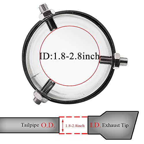 - Designed to fit exhaust pipes with an outer diameter of 1.8″ to 2.8″, ensuring compatibility with a wide range of vehicles.