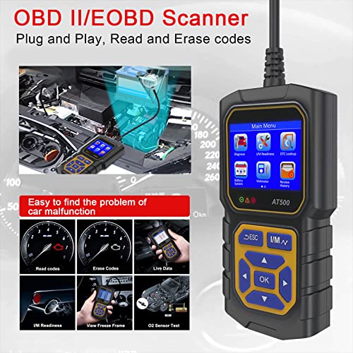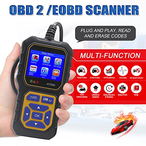 Fastsun AT500 Car OBD2 Scanner Code Reader Engine Fault Code Reader Scanner Light Auto Voltmeter CAN Diagnostic Scan Tool for All OBD II Protocol Cars Since 1996, Multilingual Support