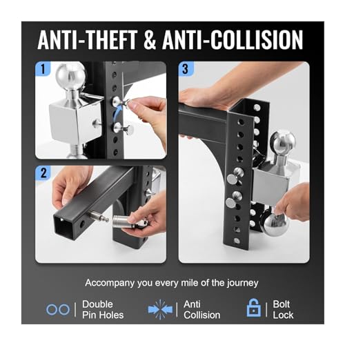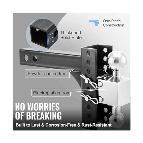 The adjustable 6/8″ rise and drop mechanism allows for precise trailer alignment, accommodating various vehicle heights and trailer configurations. Whether you’re hauling a boat, camper, or equipment trailer, this hitch adapts seamlessly.