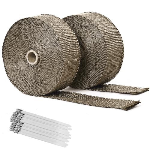 PACKAGE INCLUDED: The package comes with 2 roll of 2 inch X 50 Feet exhaust wrap heat shield, 8 pieces 11.8 inch long stainless zip ties, 8 pieces 7.9 inch long stainless zip ties, total 16 pieces of zip ties to secure the ends in place. Also a pair of thick high grip glove will be included to help you for better installation.