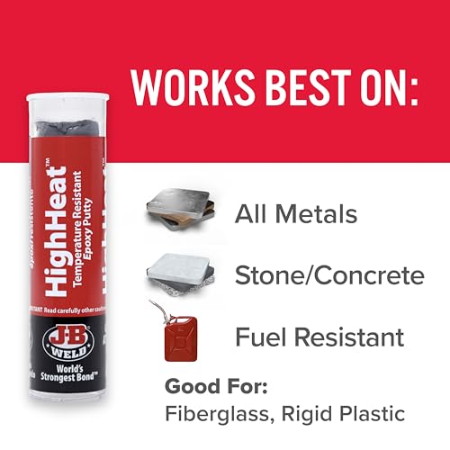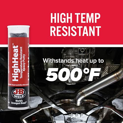 J-B Weld HighHeat Epoxy Putty repairs metal, wood & more in extreme temps up to 500°F. Hand-mixable stick bonds in 1 hour, cures steel-strong. Perfect for automotive & appliance fixes.