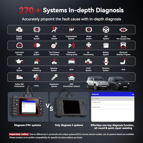 Professional-grade OBD2 scanner specifically designed for Land Rover and Jaguar vehicles. Delivers comprehensive diagnostics, battery/oil reset, and full system scans with precise fault detection and live data tracking.