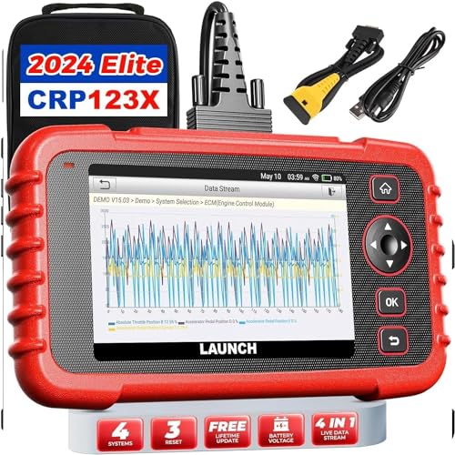 Unlock your car’s potential with the LAUNCH CRP123X Elite OBD2 Scanner. Enjoy 2024 lifetime free updates, SAS/Throttle reset, ABS/SRS and transmission diagnostics, code reading, Auto VIN, and battery testing. Perfect for precise, easy vehicle troubleshooting!