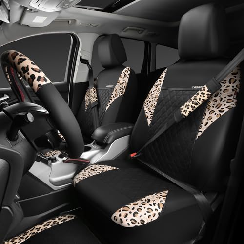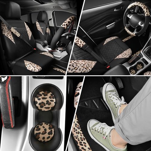 Leopard Print Car Interior Set: Universal Seat Covers, Mats, Steering Wheel Cover