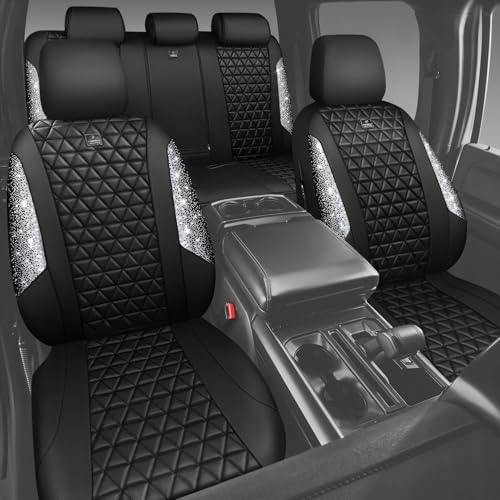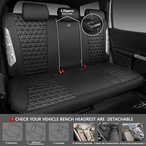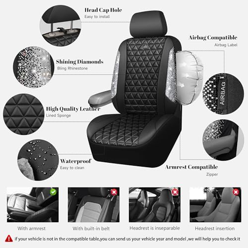 The standout feature of these seat covers is the dazzling combination of black and silver rhinestones that create a glittering effect, making your car interior truly eye-catching. Crafted from premium leather, they not only add a sophisticated look but also ensure durability and longevity.