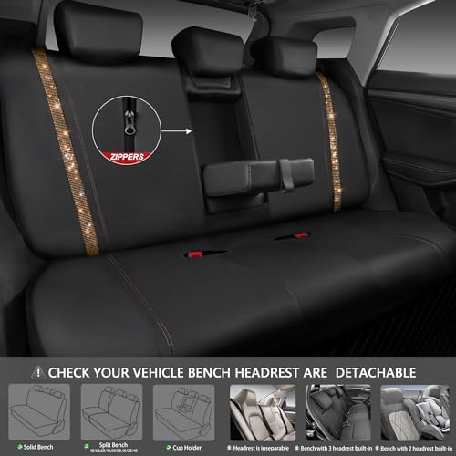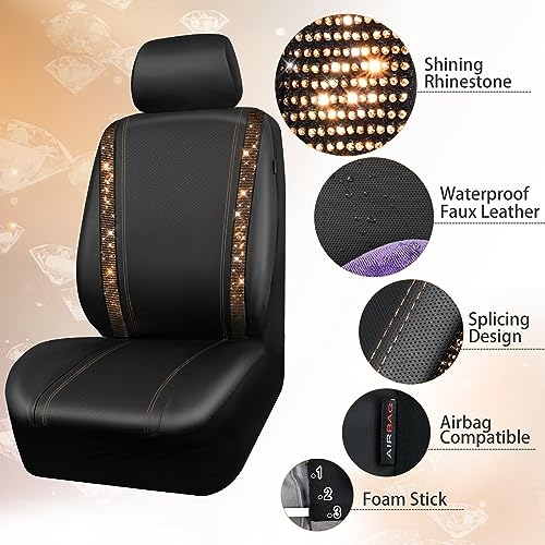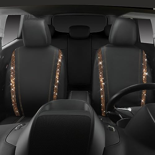 Transform your ride with CAR-PASS Leather Bling Seat Covers! Luxurious gold diamond rhinestones, waterproof design, universal fit for SUVs & trucks. Sparkle in style with ultimate comfort and glittering glamour.