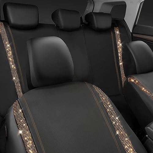 Luxury Diamond Rhinestone Car Seat Covers Full Set | Sparkly Gold Bling SUV Universal Fit