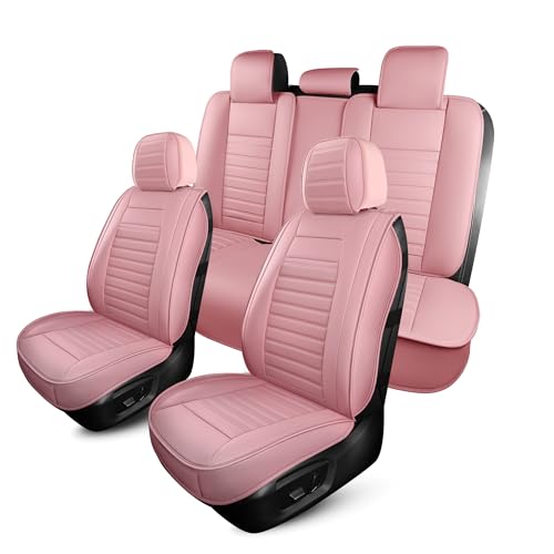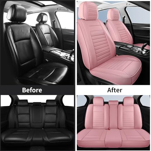 Upgrade your ride with HChengkikz’s stylish pink car seat covers! Breathable faux leather, waterproof protection, and universal fit for sedans, SUVs, and trucks. Comfort meets durability in this 5-piece full set.