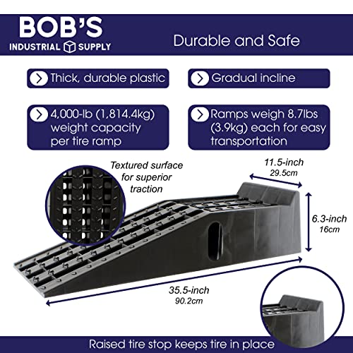 The construction of these ramps is impressive, featuring thick, durable plastic that resists wear and tear. The textured surface allows for superior traction, while non-skid pads ensure that the ramps stay put during use. The raised tire stops help prevent slippage, making these ramps as reliable as they are practical.