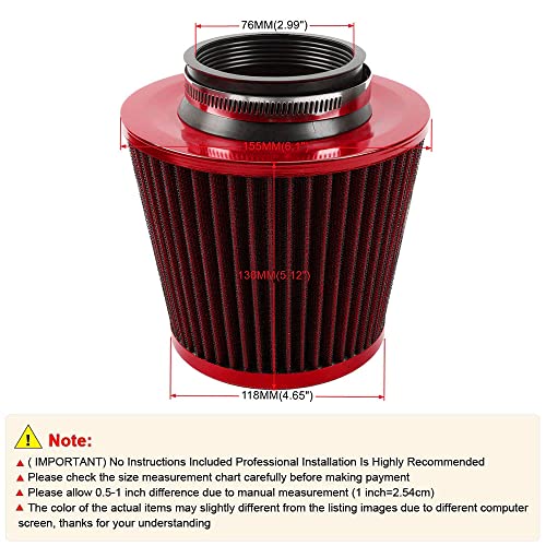The Muge Racing 3-inch Cold Air Intake Filter is ideal for DIY mechanics looking to enhance the performance of their vehicles with a high-performance, reusable filter. It is best suited for those who want a universal round tapered replacement air filter for various vehicle types, particularly performance-oriented cars. However, it’s important to check fitment compatibility with your specific vehicle model before purchasing, as installation may vary based on engine setup.