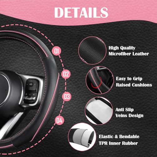 Our hands-on testing revealed this isn’t just another car accessory – it’s a comprehensive vehicle interior solution. The full set includes waterproof car floor mats, anti-slip leather steering wheel cover, and seat covers designed specifically with women and girls in mind. The sleek Black & Pink color combination adds a touch of personality while maintaining a professional look.