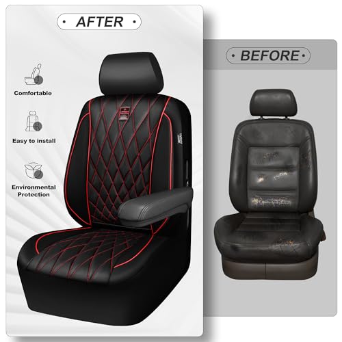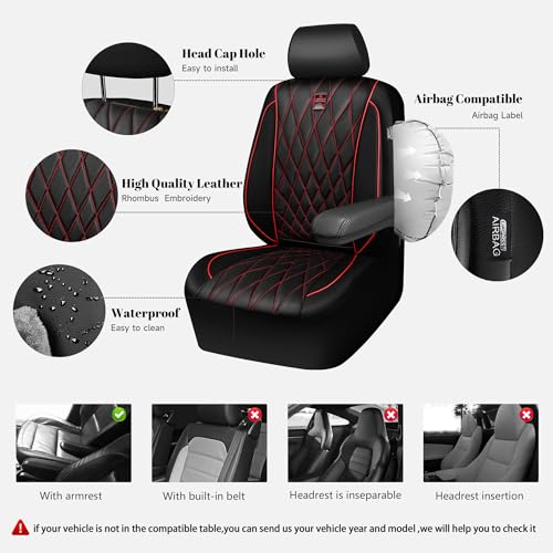 Premium Black/Red Leather Car Seat Covers – Waterproof Universal SUV Truck Protection