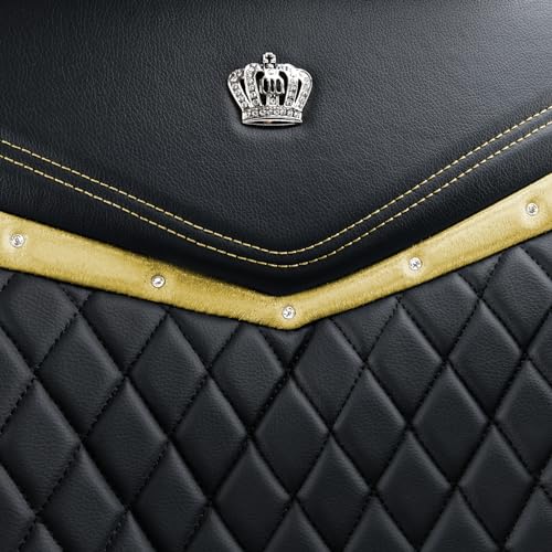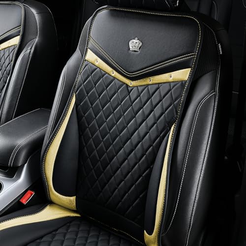 Premium faux leather car seat covers with luxurious black-gold design. Easy to install, non-slip backing ensures secure fit. Protects and upgrades your front seats with elegant style and comfort.