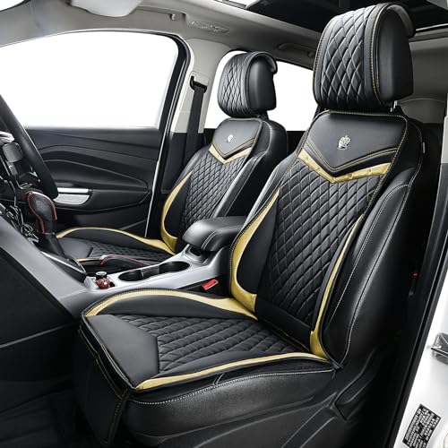 Flying Banner Car Seat Covers: Premium Black Gold Front Seat Protection with Luxe Faux Leather Finish
