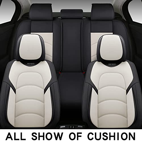 Protect your vehicle’s interior with NS YOLO’s premium full coverage car seat covers. Universal fit, waterproof leatherette design ensures style and durability for cars, SUVs, and trucks. Black and white set keeps your seats looking fresh and pristine.