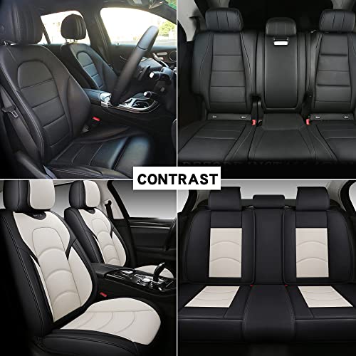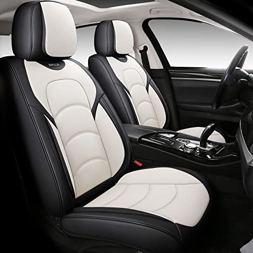 Premium Full Coverage Car Seat Covers: Waterproof Leather Universal Fit Black White