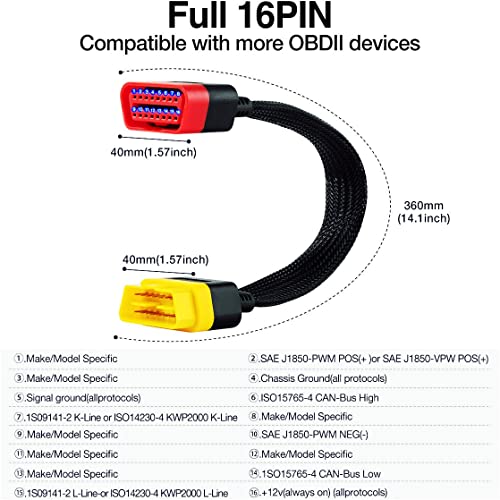 – Connector Type: 16-Pin Male to Female OBDII Standard