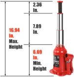 If you’re in the market for a reliable and heavy-duty hydraulic bottle jack, this model stands out with an impressive capacity of 8 tons (16,000 lbs). Designed to cater to a variety of vehicles, including trucks and SUVs, it promises easy lifting at heights ranging from a minimum of 6.69 inches to a maximum of 16.94 inches. After testing its performance in real-life situations, I can confidently share insights into how it holds up and the value it brings to your garage or workshop.