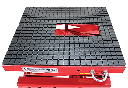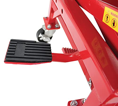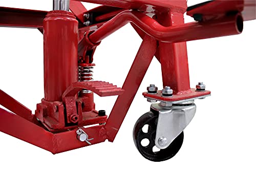 Extreme Max 5001.5083 Ultra-Stabile Hydraulic Motorcycle Lift Table with Foot Pad Lift Function - Raises Bikes from 13.25" to 34", 300 lbs. Weight Capacity, Red