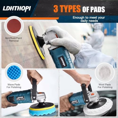 The LDHTHOPI Buffer Polisher has quickly established itself as a go-to tool for car detailing enthusiasts and professionals alike. With a robust 1600W motor and a design focusing on usability and performance, this rotary polisher promises an exceptional experience for polishing, sanding, and waxing various surfaces. From its variable speed control to its lightweight design, it includes everything needed to achieve a showroom-quality finish on your vehicle and beyond.