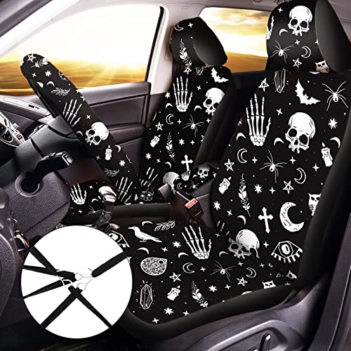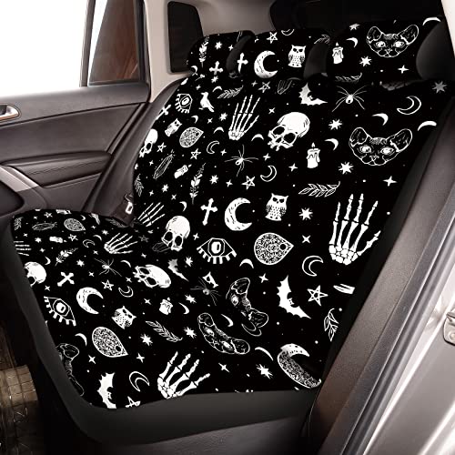 Skeleton Cat Moon Stars Car Seat Cover Set – Universal Fit, Thick Cushion, Comfort Upgrade