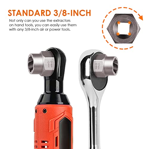 THINKWORK 13+1 Piece Bolt Extractor Set effortlessly removes damaged, stripped, frozen or rusted bolts and nuts. Heavy-duty impact-rated sockets with reverse spiral design grip tight for reliable extraction every time.