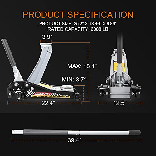 Torin 3-Ton Low Profile Racing Floor Jack – Heavy-Duty Steel Hydraulic Lift