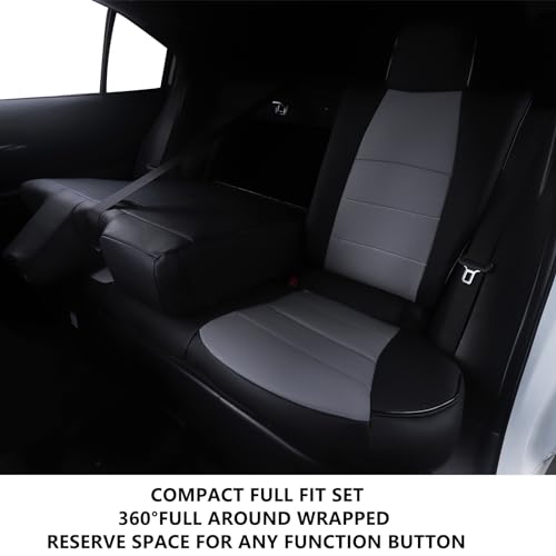 HKZ Fit Corolla Car Seat Cover Full Set for 2014-2019 Toyota Corolla L, LE, LE Eco, XLE Sedan – Faux Leather (Black + Grey)