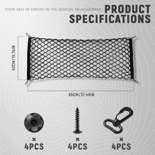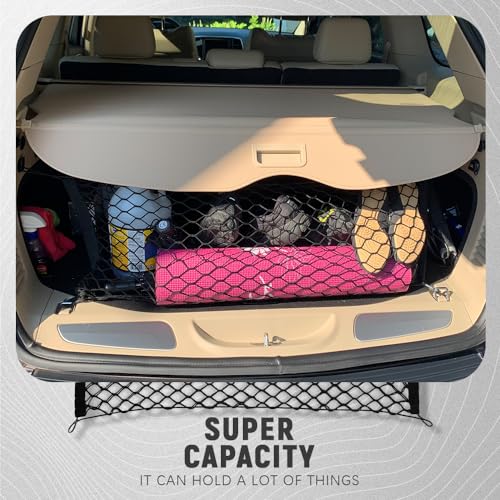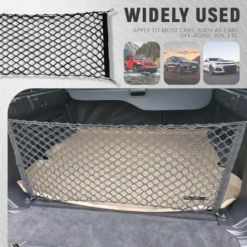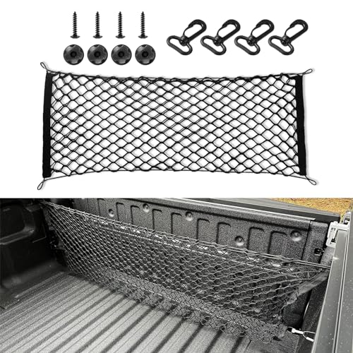 The HEVLE Cargo Net Stretchable is constructed from robust nylon double mesh material, designed to be both strong and flexible. It helps keep your car clean and organized, making it a must-have truck accessory for anyone who frequently transports items. Measuring 35.4*15.7 inches, this universal net fits most cars, SUVs, and trucks, including 4 buttonholes and 4 hooks for easy installation.