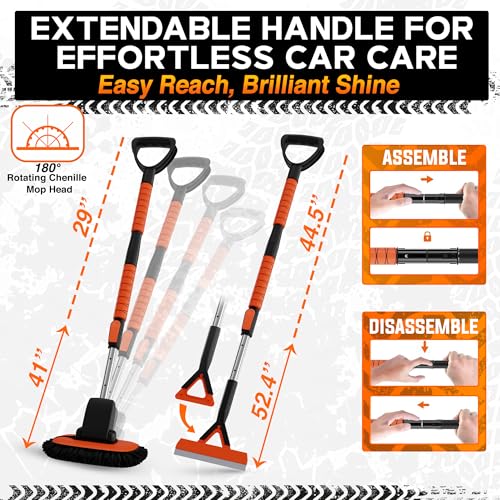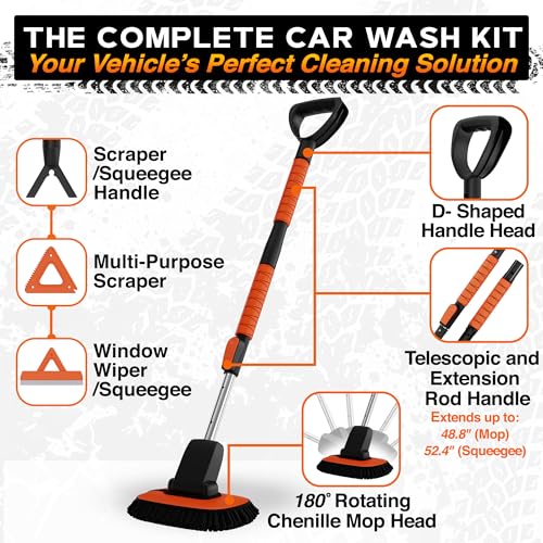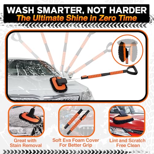 A: Yes! The long handle and versatile tools make it ideal for larger vehicles, reaching high areas and tight spots easily.