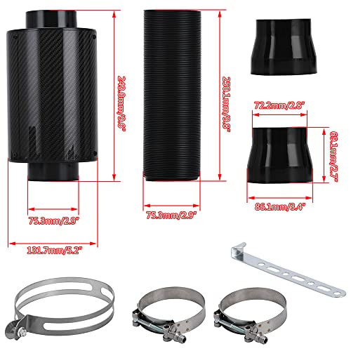 PTNHZ Universal 3" Racing Carbon Fiber Cold Feed Induction Kit Air Intake Kit Air Filter Box Without Fan