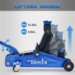 The Tonda floor jack boasts a minimum lifting height of 4.9 inches and an impressive maximum height of 11.8 inches. This range is suitable for a variety of vehicles, from low-sitting sports cars to larger SUVs. One of my favorite aspects was its built-in safety bypass system, which acts as a safety net against overloading. This feature brought me peace of mind, knowing that the jack’s operational limits were safeguarded.