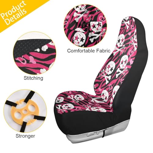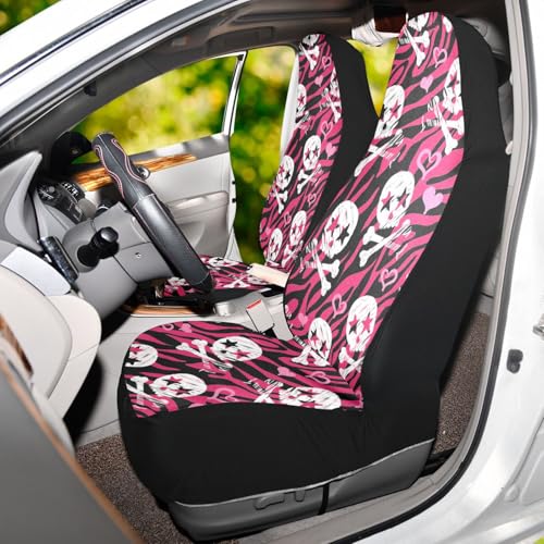 Y2K Skull Zebra Print Car Seat Covers – Universal Fit, Breathable & Non-Slip